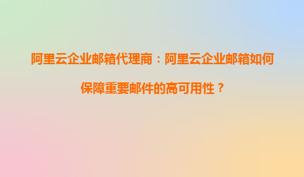 阿里云企業(yè)郵箱代理商:阿里云企業(yè)郵箱如何保障重要郵件的高可用性? 一、高可用性的重要性 在現(xiàn)代企業(yè)中,電子郵件是日常溝通和業(yè)務(wù)往來的重要工具,尤其是重要郵件(如合同、訂單、財(cái)務(wù)信息等)