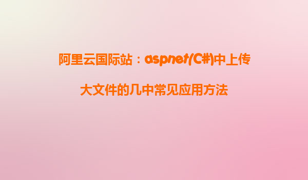 阿里云國際站:ASP.NET(C#)中上傳大文件的幾種常見應(yīng)用方法 在現(xiàn)代的Web開發(fā)中,上傳大文件成為了一個常見的需求,無論是企業(yè)級應(yīng)用還是個人項目,都可能需要處理文件上傳的場景。而當(dāng)使用ASP.NET(C#)進行開發(fā)時