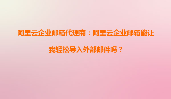 阿里云企業(yè)郵箱代理商:阿里云企業(yè)郵箱能讓我輕松導(dǎo)入外部郵件嗎? 在當今數(shù)字化辦公環(huán)境中,企業(yè)郵箱的遷移與數(shù)據(jù)整合是許多團隊面臨的關(guān)鍵問題。阿里云企業(yè)郵箱作為國內(nèi)領(lǐng)先的云郵箱服務(wù),憑借