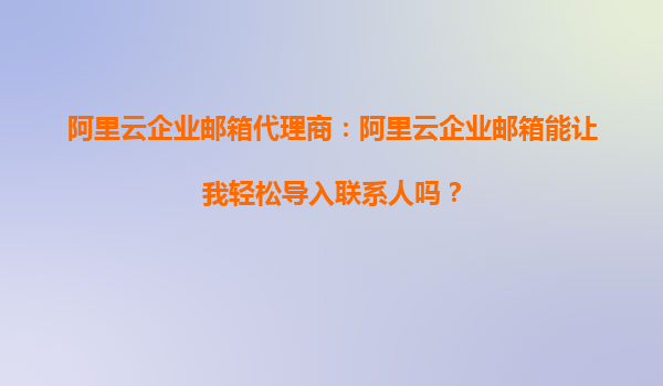 阿里云企業(yè)郵箱代理商:我能在阿里云企業(yè)郵箱中批量導(dǎo)入客戶聯(lián)系人嗎? 在當今數(shù)字化辦公環(huán)境中,企業(yè)郵箱已成為企業(yè)日常溝通的重要工具。阿里云企業(yè)郵箱憑借其穩(wěn)定、安全、高效的特點,贏得了眾多企業(yè)的青睞。而