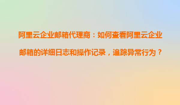 阿里云企業(yè)郵箱代理商:如何查看阿里云企業(yè)郵箱的詳細日志和操作記錄,追蹤異常行為? 一、引言 在當今數(shù)字化辦公環(huán)境中,企業(yè)郵箱作為核心通信工具,其安全性和可追溯性至關(guān)重要。阿里云企業(yè)郵箱憑借其穩(wěn)