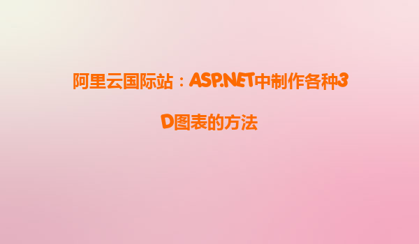 阿里云國際站:ASP.NET中制作各種3D圖表的方法 在現(xiàn)代企業(yè)的數(shù)據分析和展示中,3D圖表作為一種直觀且富有表現(xiàn)力的可視化工具,廣泛應用于各種領域。對于開發(fā)者來說,使用ASP.NET框架制作3D圖表,不僅能夠提升用戶體