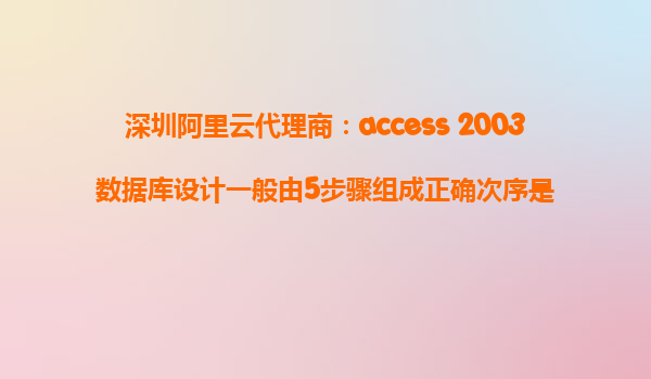 以下是根據(jù)您的要求寫的文章,按照HTML格式輸出: 深圳阿里云代理商:Access2003數(shù)據(jù)庫設(shè)計(jì)的五個(gè)步驟 在企業(yè)信息化建設(shè)的過程中,數(shù)據(jù)庫的設(shè)計(jì)與管理是至關(guān)重要的一環(huán)。尤其是在使用Access2003這類輕
