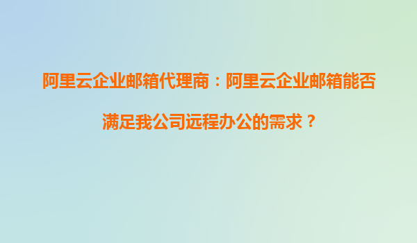 阿里云企業(yè)郵箱代理商:阿里云企業(yè)郵箱能否滿足我公司遠(yuǎn)程辦公的需求? 隨著遠(yuǎn)程辦公模式的普及,企業(yè)對高效、安全、穩(wěn)定的企業(yè)郵箱需求日益增長。阿里云企業(yè)郵箱作為國內(nèi)領(lǐng)先的企業(yè)級郵箱服務(wù),憑借其強(qiáng)大的