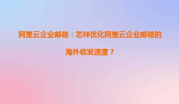 阿里云企業(yè)郵箱:怎樣優(yōu)化阿里云企業(yè)郵箱的海外收發(fā)速度? 一、阿里云企業(yè)郵箱的優(yōu)勢(shì) 阿里云企業(yè)郵箱作為國(guó)內(nèi)領(lǐng)先的企業(yè)級(jí)郵箱服務(wù),憑借其強(qiáng)大的技術(shù)實(shí)力和全球化布局,為企業(yè)用戶提供了高效、安全的郵件