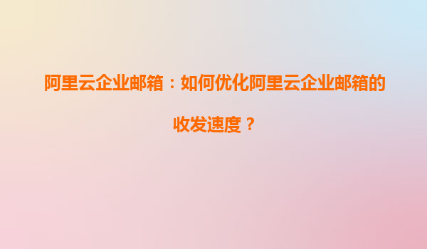 阿里云企業(yè)郵箱:如何優(yōu)化阿里云企業(yè)郵箱的收發(fā)速度? 一、引言 隨著企業(yè)信息化程度的不斷提升,企業(yè)郵箱作為日常溝通的重要工具,其性能和穩(wěn)定性直接影響工作效率。阿里云企業(yè)郵箱憑借其強(qiáng)大的基礎(chǔ)設(shè)施和