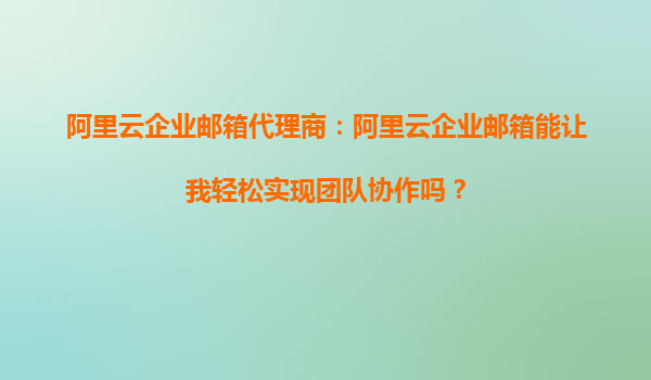 阿里云企業(yè)郵箱代理商:阿里云企業(yè)郵箱能讓我輕松實現(xiàn)團隊協(xié)作嗎? 在當今快節(jié)奏的商業(yè)環(huán)境中,高效的團隊協(xié)作是企業(yè)成功的關(guān)鍵因素之一。而選擇合適的工具來支持團隊協(xié)作,則顯得尤為重要。阿里云企業(yè)郵箱作為