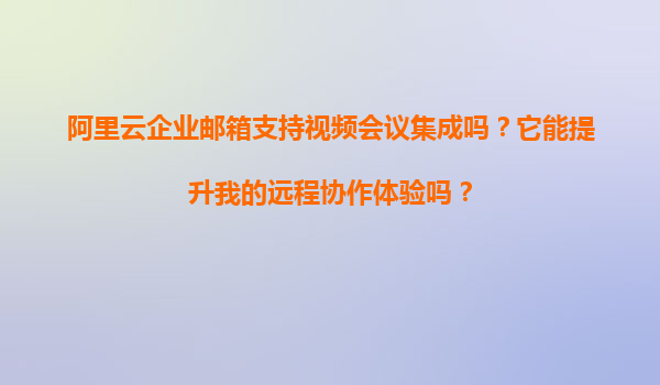 阿里云企業(yè)郵箱支持視頻會議集成嗎?它能提升我的遠程協(xié)作體驗嗎? 一、阿里云企業(yè)郵箱與視頻會議集成的優(yōu)勢 隨著遠程辦公的普及,高效的協(xié)作工具成為企業(yè)剛需