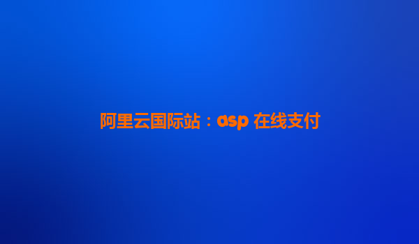 阿里云國際站:ASP在線支付解決方案的全面解析 一、標題解析與核心需求 標題“阿里云國際站:ASP在線支付”包含三個關鍵信息點: 平臺定位:阿里云國際站,面向全球市場的云計算服務平臺。 技