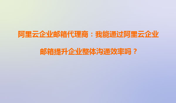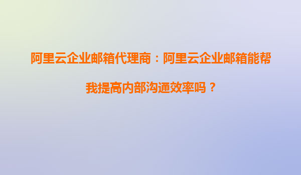 阿里云企業(yè)郵箱代理商:我可以用阿里云企業(yè)郵箱提高內(nèi)部溝通效率嗎? 在當(dāng)今快節(jié)奏的商業(yè)環(huán)境中,高效的內(nèi)部溝通是企業(yè)成功的關(guān)鍵因素之一。許多企業(yè)都在尋找能夠提升團(tuán)隊(duì)協(xié)作效率的工具,而阿里云企