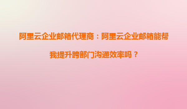 阿里云企業(yè)郵箱代理商:阿里云企業(yè)郵箱能幫我提升跨部門溝通效率嗎? 在當(dāng)今快節(jié)奏的商業(yè)環(huán)境中,高效的跨部門溝通是企業(yè)成功的關(guān)鍵因素之一。無(wú)論是大型企業(yè)還是中小型企業(yè),部門間的協(xié)作和信息共享