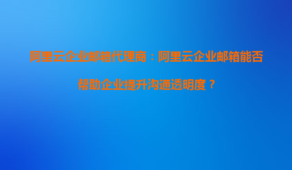 阿里云企業(yè)郵箱代理商:阿里云企業(yè)郵箱能否幫助企業(yè)提升溝通透明度? 在當(dāng)今數(shù)字化時(shí)代,企業(yè)溝通的透明度和效率直接影響著團(tuán)隊(duì)協(xié)作的成敗。阿里云企業(yè)郵箱作為一款專業(yè)的企業(yè)級(jí)郵箱服務(wù),不僅提供了穩(wěn)定可靠的
