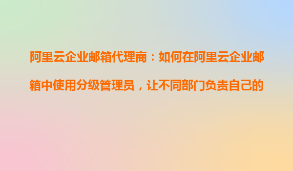 阿里云企業(yè)郵箱代理商:提升管理效率的分級管理員權限設置解析 一、阿里云企業(yè)郵箱的核心優(yōu)勢 阿里云企業(yè)郵箱作為國內(nèi)領先的企業(yè)通信解決方案,憑借阿里云強大的技術實力和生態(tài)體系,為企業(yè)用戶提供了高效
