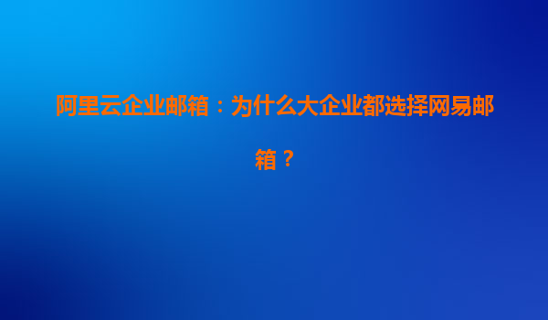 阿里云企業(yè)郵箱:為什么大企業(yè)都選擇網(wǎng)易郵箱? 隨著互聯(lián)網(wǎng)的迅猛發(fā)展,電子郵件已經(jīng)成為企業(yè)溝通的核心工具之一。尤其是在大企業(yè)中,企業(yè)郵箱不僅僅是日常辦公的必備工具,更是信息安全、管理效率和團(tuán)隊(duì)協(xié)作的