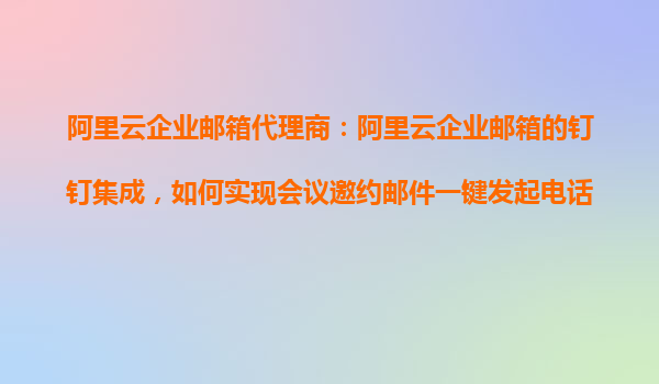 阿里云企業(yè)郵箱代理商:阿里云企業(yè)郵箱的釘釘集成,如何實(shí)現(xiàn)會(huì)議邀約郵件一鍵發(fā)起電話會(huì)議? 在當(dāng)今快節(jié)奏的商業(yè)環(huán)境中,高效的溝通工具是企業(yè)運(yùn)營(yíng)的核心。阿里云企業(yè)郵箱作為一款專業(yè)的企業(yè)級(jí)郵件服