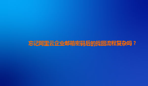 阿里云企業(yè)郵箱密碼找回流程是否復(fù)雜? 當(dāng)我們忘記阿里云企業(yè)郵箱密碼時,可能會擔(dān)心找回流程是否復(fù)雜。實(shí)際上,阿里云提供了簡便且安全的密碼找回機(jī)制,只需幾步即可完成密碼重置。這得益于阿里云平臺的高效用
