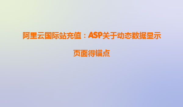 阿里云國際站充值:ASP關(guān)于動(dòng)態(tài)數(shù)據(jù)顯示頁面的錨點(diǎn) 隨著全球云計(jì)算技術(shù)的快速發(fā)展,阿里云作為領(lǐng)先的云計(jì)算服務(wù)平臺(tái),已經(jīng)逐漸成為了眾多企業(yè)和開發(fā)者的首選。阿里云國際站作為面向全球市場(chǎng)的云計(jì)算服務(wù)平臺(tái),提供