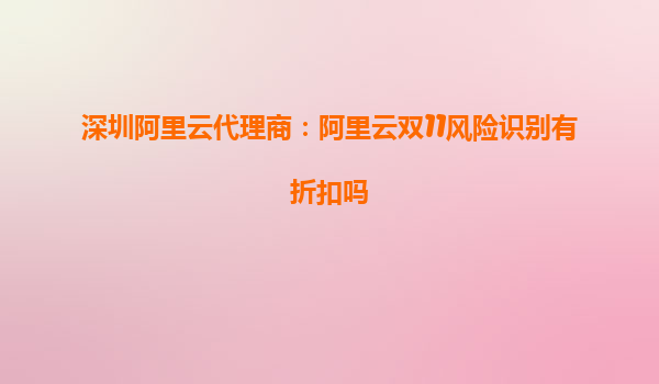 阿里云雙11狂歡來襲:風險識別服務(wù)享專屬折扣! 雙11全民購物季,阿里云為您保駕護航 隨著雙11購物狂歡節(jié)的臨近,各行業(yè)商家迎來年度最重要的營銷節(jié)點。作為中國領(lǐng)先的云計算服務(wù)商,阿里云特別推出"