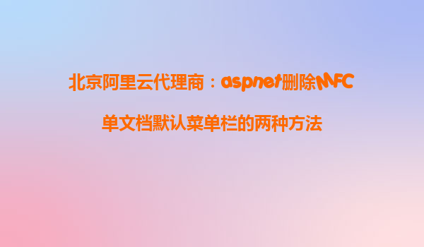 北京阿里云代理商:ASP.NET刪除MFC單文檔默認(rèn)菜單欄的兩種方法 在使用ASP.NET開發(fā)桌面應(yīng)用程序時,開發(fā)者可能會遇到需要自定義界面的一些需求。例如,在開發(fā)MFC(MicrosoftFoundationClasses)單文檔應(yīng)用程序