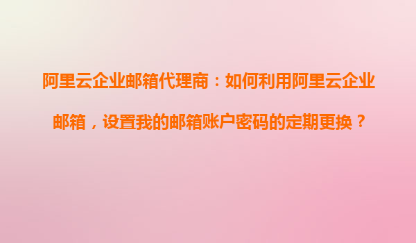 阿里云企業(yè)郵箱代理商指南:如何利用阿里云企業(yè)郵箱設(shè)置郵箱賬戶密碼定期更換 前言 在當(dāng)今數(shù)字化時(shí)代,企業(yè)郵箱的安全性至關(guān)重要。作為阿里云企業(yè)郵箱代理商,了解如何幫助企業(yè)客戶設(shè)置郵箱賬戶密碼的定期