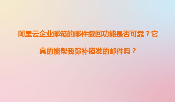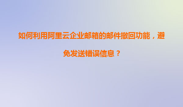 阿里云企業(yè)郵箱郵件撤回功能詳解與優(yōu)勢(shì)分析 一、郵件撤回功能的價(jià)值與應(yīng)用場(chǎng)景 在日常辦公中,誤發(fā)郵件的情況時(shí)有發(fā)生,如錯(cuò)發(fā)對(duì)象、內(nèi)容錯(cuò)誤或包含敏感信息等。阿里云企業(yè)郵箱的郵件撤回功能為企業(yè)用戶提供了"后