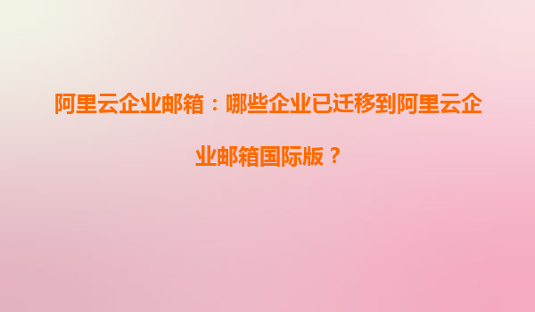 阿里云企業(yè)郵箱:哪些企業(yè)已遷移到阿里云企業(yè)郵箱國(guó)際版? 引言 在數(shù)字化轉(zhuǎn)型加速的今天,企業(yè)郵箱作為內(nèi)外溝通的重要工具,其穩(wěn)定性和安全性直接關(guān)系到企業(yè)的運(yùn)營(yíng)效率。阿里云企業(yè)郵箱國(guó)際