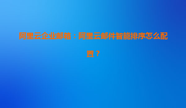 • 阿里云企業(yè)郵箱:郵件智能排序功能詳解與配置指南 一、阿里云企業(yè)郵箱的核心優(yōu)勢 阿里云企業(yè)郵箱作為國內(nèi)領(lǐng)先的商務(wù)通信解決方案,具備以下核心優(yōu)勢: 智能算法驅(qū)動:基于阿里云自研AI技術(shù)實