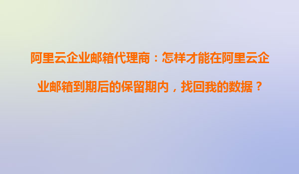 阿里云企業(yè)郵箱代理商指南:如何在到期保留期內(nèi)找回數(shù)據(jù) 一、阿里云企業(yè)郵箱的優(yōu)勢 阿里云企業(yè)郵箱作為國內(nèi)領(lǐng)先的企業(yè)級郵件服務(wù),具備以下核心優(yōu)勢: 高可靠性:基于阿里云全球數(shù)據(jù)