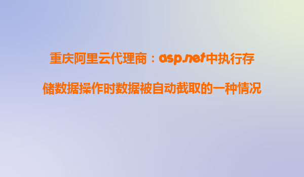 重慶阿里云代理商:asp.net中執(zhí)行存儲數(shù)據(jù)操作時數(shù)據(jù)被自動截取的一種情況分析及阿里云優(yōu)勢解讀 一、背景介紹 在當前數(shù)字化轉(zhuǎn)型加速的背景下,越來越多的企業(yè)選擇通過阿里云進行IT基礎設施的部署,尤其是