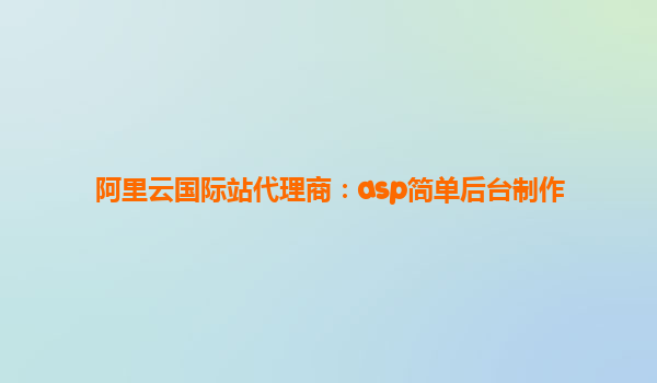 阿里云國際站代理商:ASP簡單后臺(tái)制作的全面解決方案 一、阿里云國際站代理商的優(yōu)勢(shì) 阿里云作為全球領(lǐng)先的云計(jì)算服務(wù)提供商,其國際站代理商不僅能夠享受阿里云強(qiáng)大的技術(shù)支持,還能通過
