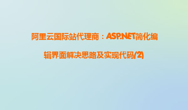 阿里云國際站代理商:ASP.NET簡化編輯界面解決思路及實現(xiàn)代碼 隨著互聯(lián)網(wǎng)技術(shù)的發(fā)展,企業(yè)對云計算、云服務的需求愈發(fā)強烈。阿里云作為全球領(lǐng)先的云計算服務商,憑借其強大的技術(shù)優(yōu)勢和完善的服務體系,吸引了