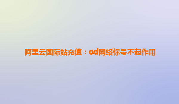 阿里云國際站充值:AD網(wǎng)絡標號不起作用 在數(shù)字廣告日益發(fā)展的今天,企業(yè)和個人都依賴于精準的廣告投放來擴大品牌知名度、增加銷量。而阿里云國際站作為全球領先的云計算服務平臺,提供了許多關于廣告投放的技術支持