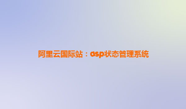 阿里云國(guó)際站:ASP狀態(tài)管理系統(tǒng)——云端賦能企業(yè)全球化 一、標(biāo)題解析:ASP狀態(tài)管理系統(tǒng)的核心價(jià)值 標(biāo)題“阿里云國(guó)際站:ASP狀態(tài)管理系統(tǒng)”包含三個(gè)關(guān)鍵信息:阿里云國(guó)際站、ASP技術(shù)和狀態(tài)管理。其中: