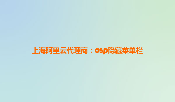 上海阿里云代理商:ASP隱藏菜單欄技術(shù)解析與阿里云優(yōu)勢融合 一、標題解析:ASP隱藏菜單欄的核心需求 標題“上海阿里云代理商:ASP隱藏菜單欄”可拆解為三個關(guān)鍵信息: 地域性:以上