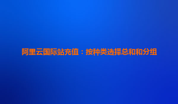 阿里云國際站充值:按種類選擇總和和分組的最佳實踐 一、引言 隨著全球數(shù)字化轉(zhuǎn)型加速,云計算服務(wù)已成為企業(yè)IT基礎(chǔ)設(shè)施的核心。阿里云作為全球領(lǐng)先的云服務(wù)提