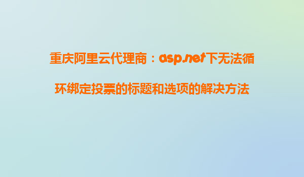 解決ASP.NET下無法循環(huán)綁定投票的標(biāo)題和選項(xiàng)問題的辦法 在ASP.NET開發(fā)中,遇到無法循環(huán)綁定投票標(biāo)題和選項(xiàng)的問題時(shí),不僅會(huì)影響程序的運(yùn)行效率,還會(huì)影響用戶體驗(yàn)。尤其是在使用阿里云進(jìn)行部署時(shí),這個(gè)問題尤為