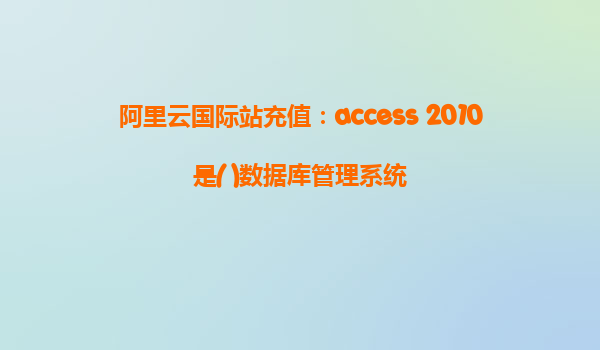 阿里云國(guó)際站充值:Access2010是()數(shù)據(jù)庫(kù)管理系統(tǒng) 一、引言 在現(xiàn)代信息化時(shí)代,數(shù)據(jù)庫(kù)管理系統(tǒng)(DBMS)是支持各種應(yīng)用程序存儲(chǔ)和管理數(shù)據(jù)的核心技術(shù)。微軟的Access2010是一個(gè)關(guān)系型數(shù)據(jù)庫(kù)管理系統(tǒng)(RDBMS),它