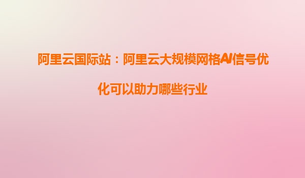 阿里云國際站充值:大規(guī)模網(wǎng)格AI信號優(yōu)化應(yīng)用場景解析 一、標(biāo)題深度解析:技術(shù)賦能的核心價值 標(biāo)題"阿里云國際站充值:阿里云大規(guī)模網(wǎng)格AI信號優(yōu)化應(yīng)用場景"包含三層戰(zhàn)略含義: