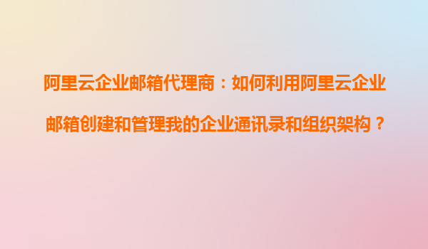 阿里云企業(yè)郵箱代理商:如何利用阿里云企業(yè)郵箱創(chuàng)建和管理企業(yè)通訊錄與組織架構(gòu) 引言 隨著企業(yè)規(guī)模的擴大和信息化需求的提升,高效、穩(wěn)定的企業(yè)郵箱系統(tǒng)成為企業(yè)溝通協(xié)作的核心工具之一。阿里云企業(yè)郵箱憑