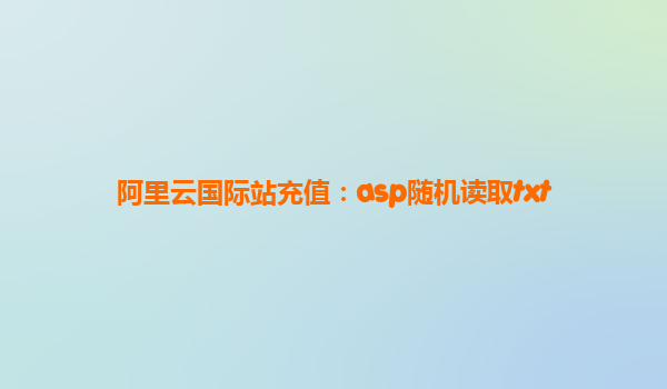 阿里云國際站充值:ASP隨機(jī)讀取TXT文件的技術(shù)實(shí)現(xiàn)與場景應(yīng)用 一、標(biāo)題解析與阿里云核心優(yōu)勢 標(biāo)題“阿里云國際站充值:ASP隨機(jī)讀取TXT”包含三個(gè)核心要素: 阿里云國際站充值:指向跨境支付場景下的云