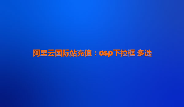 阿里云國(guó)際站充值:ASP下拉框多選功能深度解析與應(yīng)用指南 一、ASP下拉框多選在阿里云國(guó)際站的核心價(jià)值 在阿里云國(guó)際站(AlibabaCloudInternational)的支付系統(tǒng)開(kāi)發(fā)中,ASP下拉框多選功能(Multi-selectDr