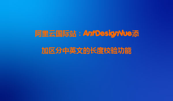 阿里云國(guó)際站:AntDesignVue添加區(qū)分中英文的長(zhǎng)度校驗(yàn)功能 在現(xiàn)代前端開(kāi)發(fā)中,界面組件庫(kù)(如AntDesignVue)被廣泛使用。它提供了許多實(shí)用的功能,可以幫助開(kāi)發(fā)者快速構(gòu)建高效、可維護(hù)的UI界面。然而,隨著多
