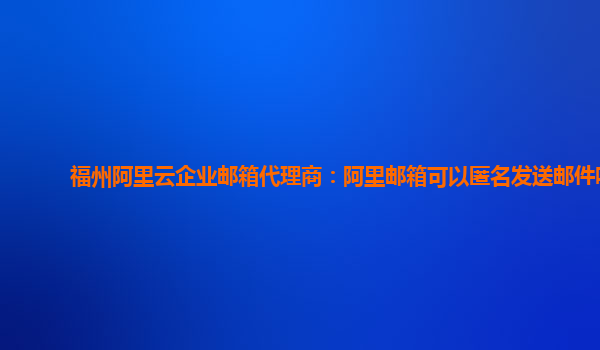 廈門阿里云企業(yè)郵箱代理商:阿里郵箱匿名郵件怎么發(fā) 阿里云企業(yè)郵箱是一款專為企業(yè)用戶打造的高效、安全、穩(wěn)定的企業(yè)郵箱服務(wù)。作為廈門阿里云企業(yè)郵箱代理商,我們致力于為客戶提供優(yōu)質(zhì)的企業(yè)郵箱解決方案,同時(shí)也