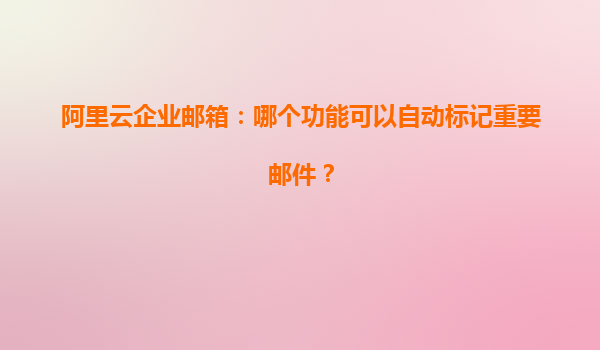 阿里云企業(yè)郵箱:哪個功能可以自動標記重要郵件? 在現(xiàn)代企業(yè)中,電子郵件已經(jīng)成為了日常工作中不可或缺的溝通工具。尤其對于一些有著較大業(yè)務需求的公司,管理和高效處理電子郵件的能力直接影響到工作效率與團隊協(xié)