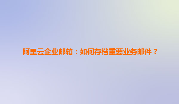 阿里云企業(yè)郵箱:如何存檔重要業(yè)務郵件? 在現(xiàn)代商業(yè)環(huán)境中,電子郵件已成為企業(yè)溝通的主要工具。無論是與客戶、合作伙伴,還是內(nèi)部員工的溝通,都離不開電子郵件的支持。尤其對于企業(yè)來說,郵件不僅承載著重要