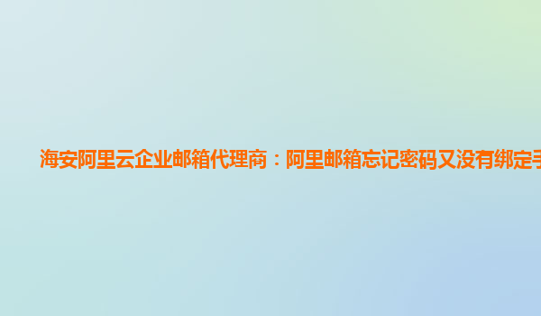 海安阿里云企業(yè)郵箱代理商:阿里郵箱忘記密碼又沒有綁定手機(jī)號 作為海安地區(qū)的阿里云企業(yè)郵箱代理商,我們經(jīng)常接到客戶反映忘記密碼又沒有綁定手機(jī)號的情況。這種情況對于個(gè)人郵箱來說可能會非常頭疼,但對于使