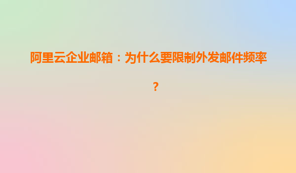 阿里云企業(yè)郵箱:為什么要限制外發(fā)郵件頻率? 在當(dāng)今的商業(yè)環(huán)境中,電子郵件已成為企業(yè)溝通的重要工具。阿里云企業(yè)郵箱作為市場上的主要服務(wù)之一,提供了穩(wěn)定、安全的郵件處理服務(wù)。然而,許多用戶可能會對阿里