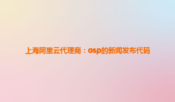 上海阿里云代理商:ASP新聞系統(tǒng)解決方案的優(yōu)勢(shì)解析 一、標(biāo)題解析與需求背景 標(biāo)題“上海阿里云代理商:ASP新聞系統(tǒng)”包含三個(gè)核心信息點(diǎn):