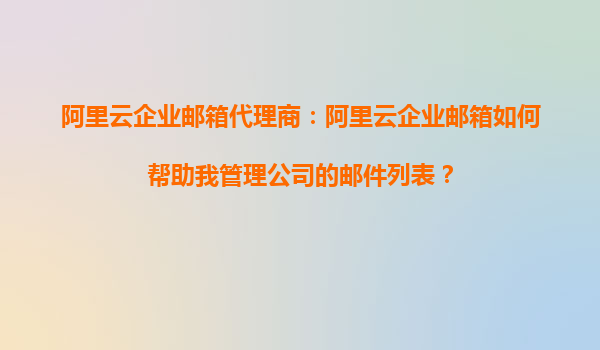 阿里云企業(yè)郵箱代理商:我可以通過阿里云企業(yè)郵箱快速整理郵件列表嗎? 一、阿里云企業(yè)郵箱的核心優(yōu)勢 作為國內(nèi)領(lǐng)先的云服務(wù)商,阿里云企業(yè)郵箱憑借其強大的技