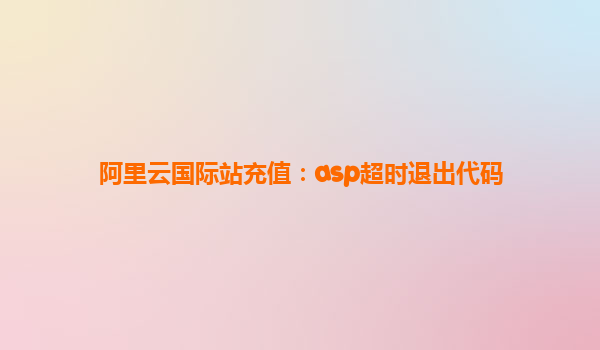 阿里云國際站充值:ASP超時退出代碼解析與解決方案 一、ASP超時退出問題概述 在阿里云國際站充值和支付過程中,ASP(ActiveServerPages)頁面可能會出現(xiàn)超時退出的情況。這通常是由于腳本執(zhí)